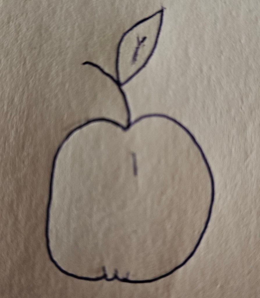 La manzana rodó hasta caer de la mesa a las piernas de la mujer.
